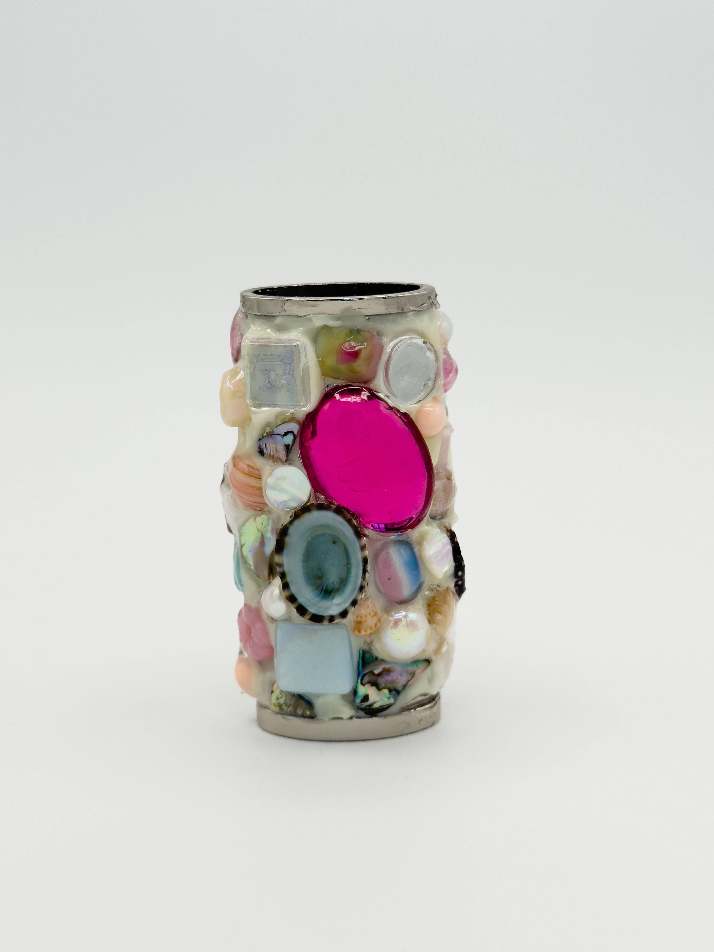 Say hi to Kerry! Our lighter cases are made using real shells, gems, pearls, vintage cabochons, mosaic tiles, ceramic chips, and other up-cycled bits and bobs. While sturdy, we ask that you avoid drops, bumps, and falls to prolong the life and quality of your case!