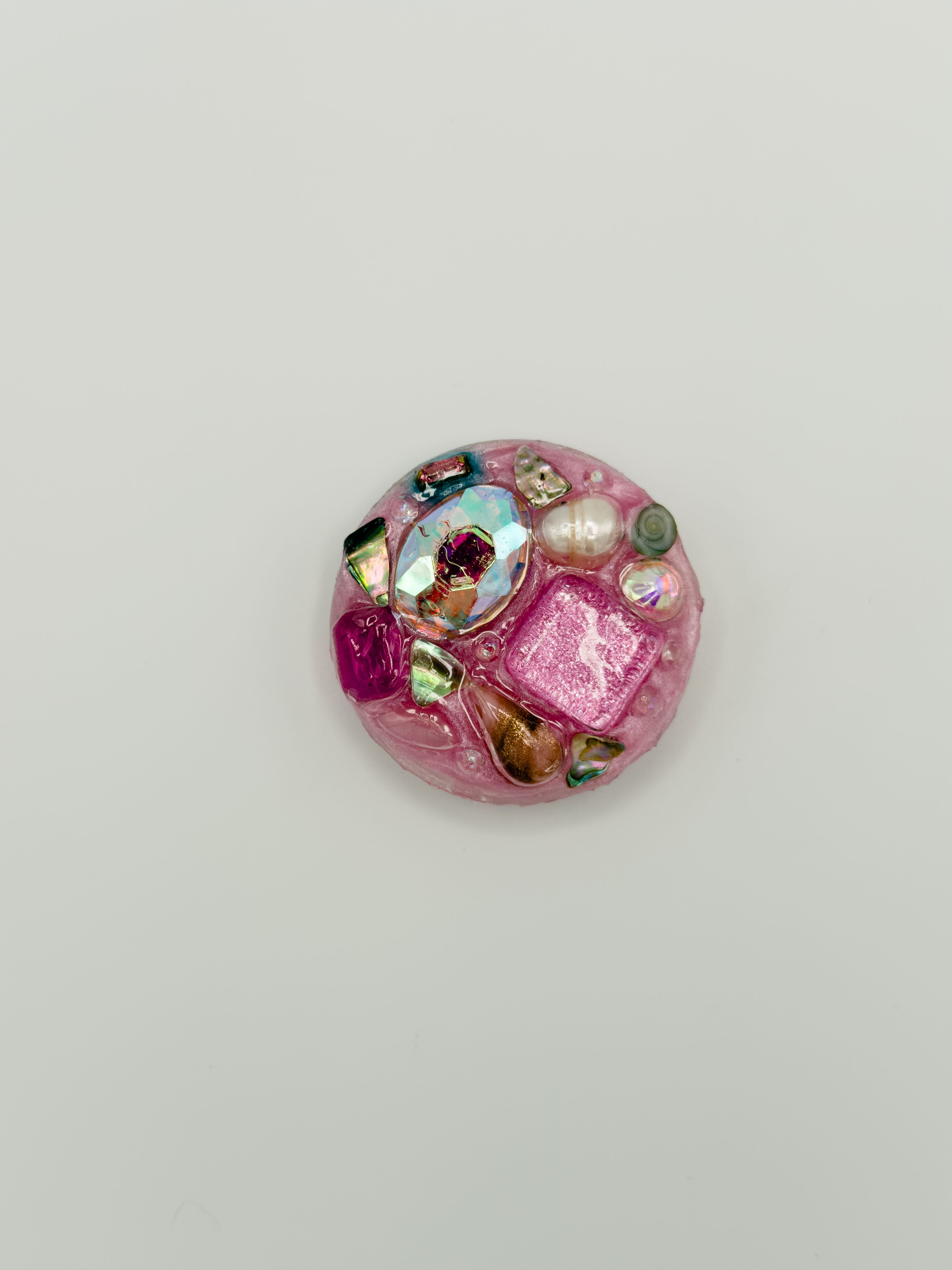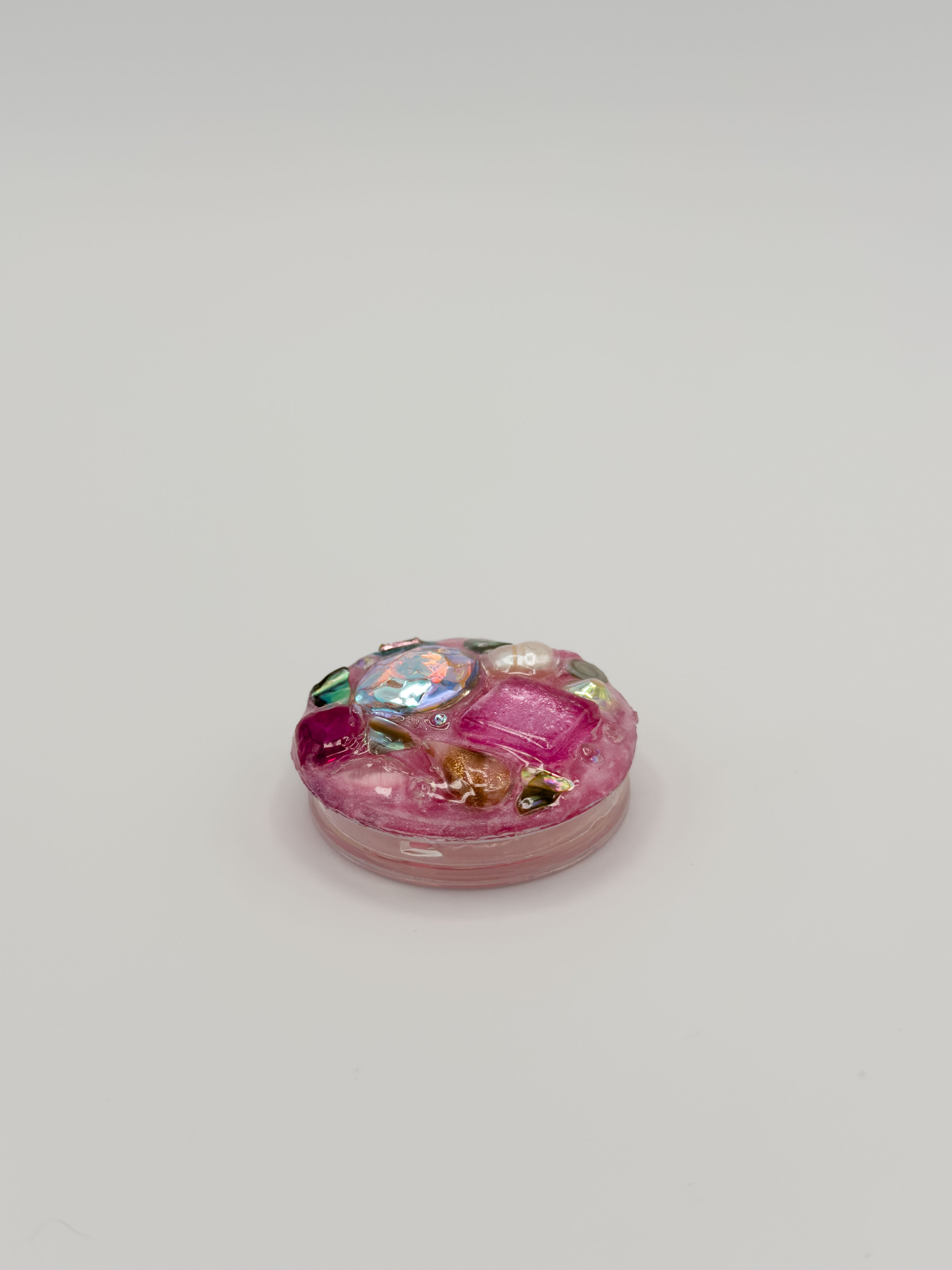 Our phone grips start with a clear TPU expandable phone grip base. We then lather down a coating of silicone or gel based glue and sprinkle on real shells, gems, pearls, vintage cabochons, natural material, porcelain chips, and other up-cycled bits and bobs. A UV-cured coating of resin is applied on top to seal, protect, and add some extra shine. While sturdy, we ask that you avoid drops, bumps, and falls to prolong the life and quality of your case!