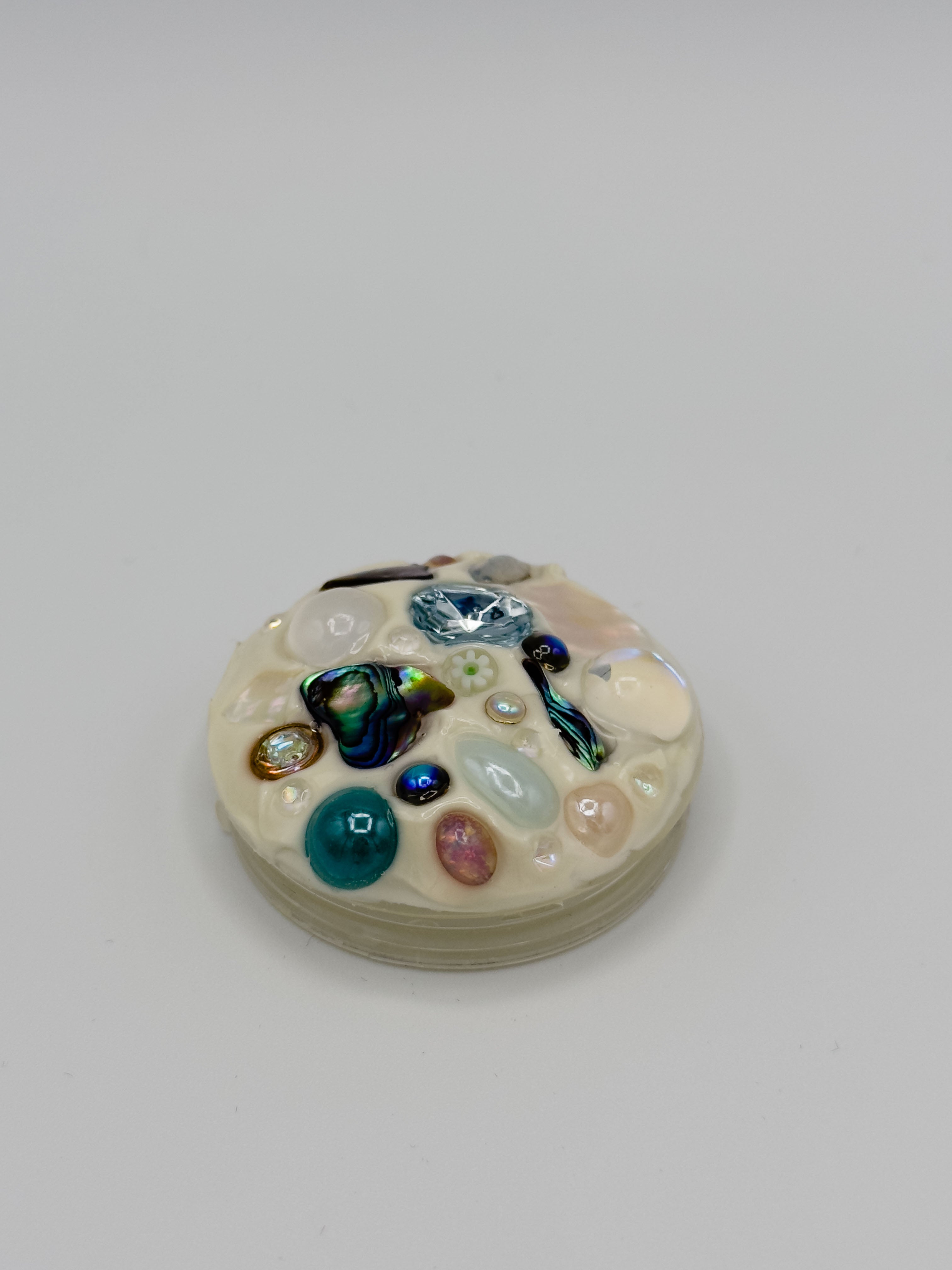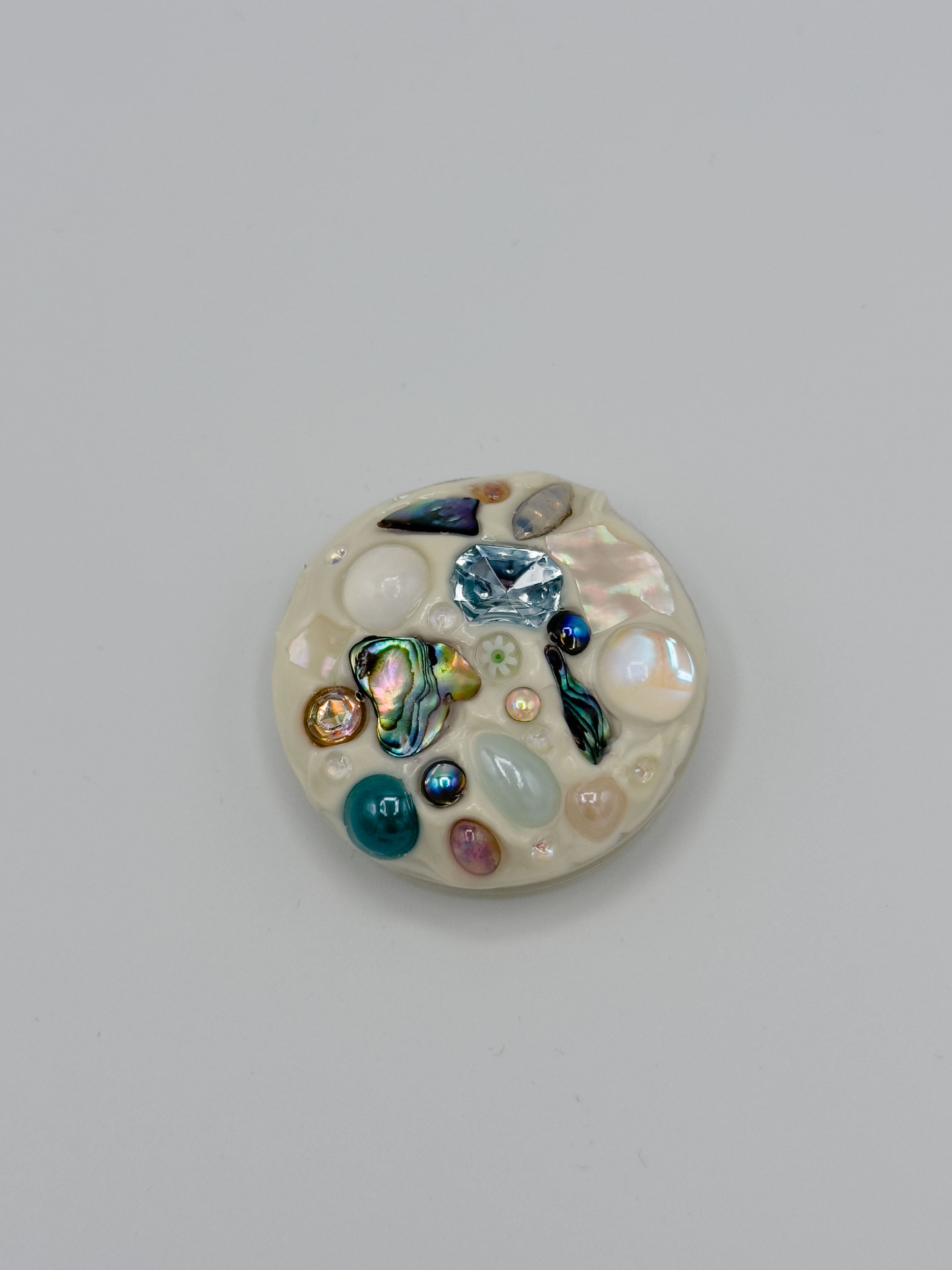 Our phone grips start with a clear TPU expandable phone grip base. We then lather down a coating of silicone or gel based glue and sprinkle on real shells, gems, pearls, vintage cabochons, natural material, porcelain chips, and other up-cycled bits and bobs. A UV-cured coating of resin is applied on top to seal, protect, and add some extra shine. While sturdy, we ask that you avoid drops, bumps, and falls to prolong the life and quality of your case!